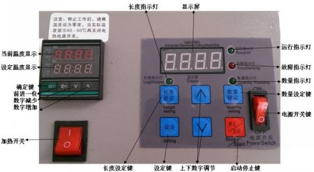記憶功能:在開關(guān)關(guān)閉前,自動(dòng)存儲(chǔ)所設(shè)值的切斷長(zhǎng)度和切斷數(shù)量以及切斷速度。