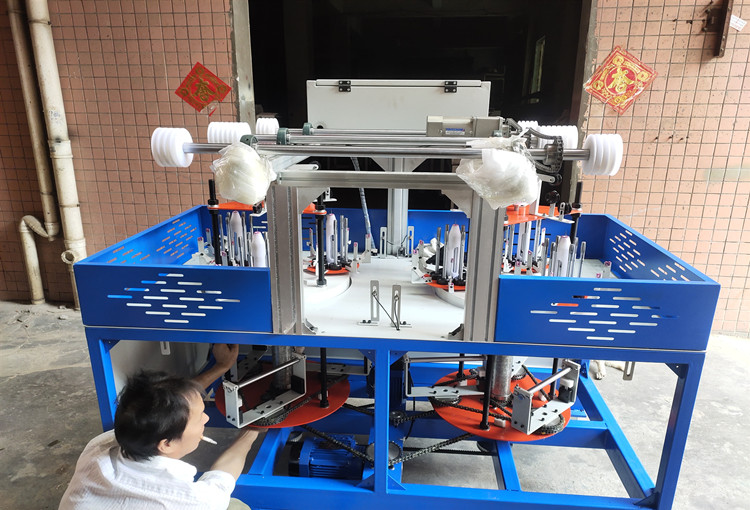 產(chǎn)品介紹:本機(jī)器全稱多功能全自動(dòng)三股繩一體機(jī),是萬氏公司研發(fā)的用于編制多種用途三股繩的機(jī)器。機(jī)器整體采用自動(dòng)化控制系統(tǒng),可通過觸摸屏自主調(diào)節(jié)繞絲數(shù)量、成品繩松緊度以及繞絲間距,以滿足客戶產(chǎn)品的不同需求。機(jī)器采用一健啟動(dòng)功能,操作簡(jiǎn)便高效。相比與傳統(tǒng)三股繩一體機(jī),本機(jī)器可節(jié)約人工成本50%左右,減少場(chǎng)地占地面積40%左右,噪音更低,機(jī)器性能更加穩(wěn)定。一臺(tái)機(jī)器每分鐘可生產(chǎn)產(chǎn)品繩7米以上,極大程度的提升了生產(chǎn)效能,為織帶行業(yè)助力。